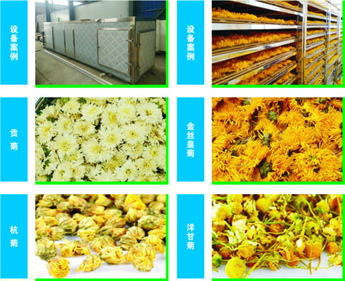 新鮮菊花含水量較高,其中花瓣部分含水量較少,組織較嫩,容易干燥,而花頭部分含水量特大,可達(dá)80%以上,且組織較老,不易失水,菊花是一種組織極不均勻的藥材。因此,遠(yuǎn)圖菊花烘干機(jī)對(duì)芘頭部分進(jìn)行強(qiáng)干燥,而對(duì)花瓣部分進(jìn)行弱干燥。烘出的菊花色澤金黃,花香濃郁,花芯不散。